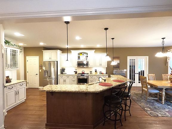 *** Offer accepted - Accepting Back-up Offers ***. Meticulous - Quality - Upgraded! Not your typical Ranch in this market! Large open floor plan. Granite hard surface counters in the kitchen, baths & laundry room! Engineered hard wood flooring. Quality Custom Grabill soft close cabinetry through-out. Detailed interior 9' ceilings. Custom walk-in ceramic shower. Generous use of can lighting (interior & exterior). Quality trim package with both solid core and glass paneled interior doors. Built-in sound system. Stainless steel appliances with dual heat range oven. Over-sized Anderson Windows. Large walk-in closets. Professionally landscaped, irrigation system, stamped patio and walk to additional lower stamped patio with hot-tub (negotiable) & fire pit. Private Setting - common area to the right (North) and property backs up to a 6 acre wooded preserve - one of the nicest lots in the neighborhood! Over-sized three car garage with stainless steel wash sink and work bench/cabinetry (negotiable). Den/office has closet & could be used as 4th bedroom if desired. Numerous updates and improvements made since it was built in 2014! Move in condition! Call to set up your showing today!!