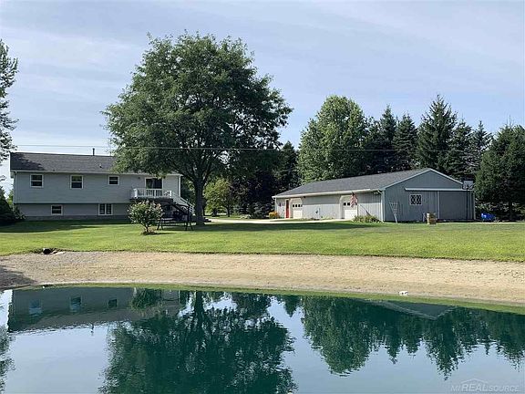 Nearly 3 1/2 acres of a fun filled park like setting. The property has lots of trees for privacy, beautiful perennial gardens to enjoy, and a well cared for pond with a ZIP LINE and small NINJA course. Come on in the home and you are welcomed by an EXQUISITE vaulted pine ceiling in the GREAT Room and Kitchen. The home offers 4 bedrooms and 3 full baths. MASTER Suite has a private bath with oversized jacuzzi tub, walk in closet and laundry closet. There are hook ups for the laundry in the lower level also. RECENT updates include: NEW furnace 2019, Kitchen and Bathroom flooring 2014, pine ceiling 2012, and cement slab 2011. Roof 2009, A/C 2006. There are TWO wood stoves in the home, one on each level. The lower level could be used as a mother-in-law suite with bedroom, bathroom, and family room. INSULATED POLE BARN 32x64 with 220.