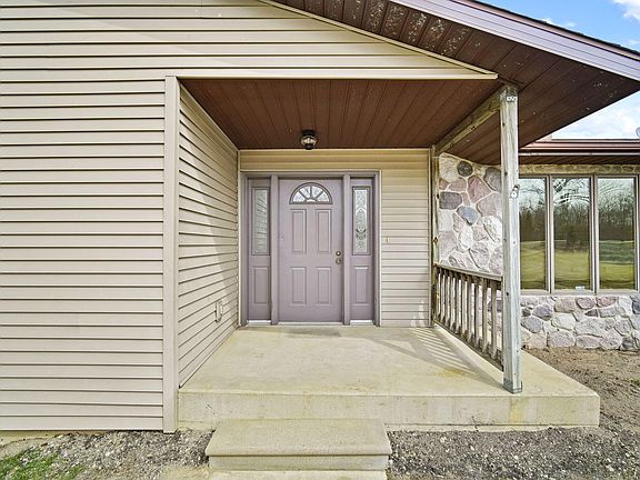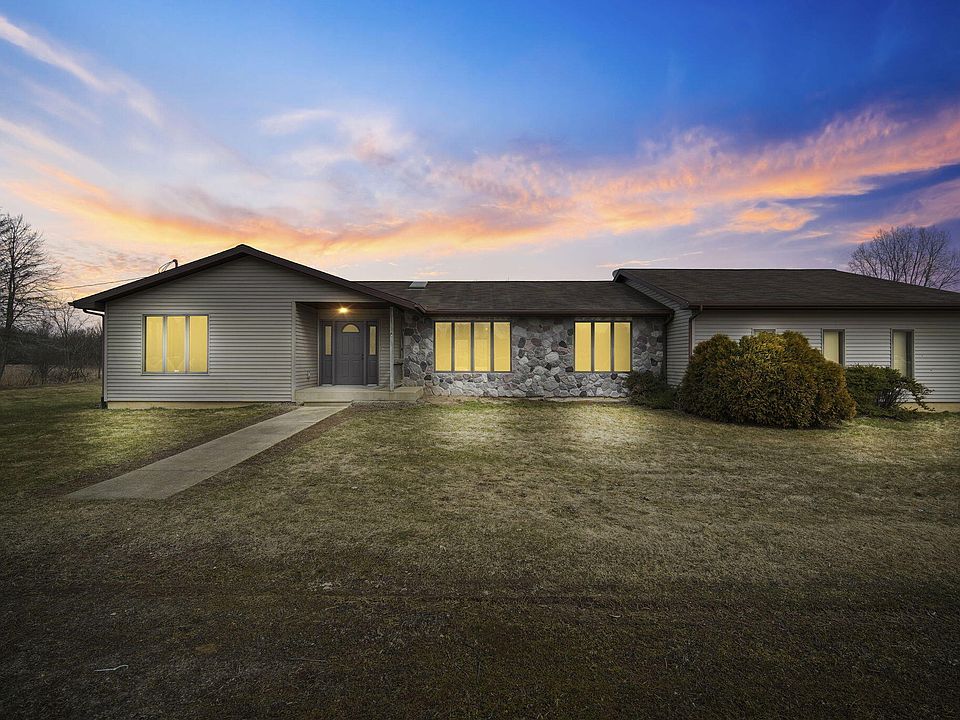 Welcome to your very own private oasis with amazing deer hunting opportunities! This stunning 3-bedroom, 2.5-bathroom home is situated on a sprawling 37-acre property, complete with mature trees & breathtaking views that are home to an abundance of wildlife including eagles, whitetail deer, cranes, herons, swans & so much more! This property is complete with spring fed pond stocked with plenty of fish plus your very own private beach! Large Pole Barn w/ concrete floor, electric, work bench for the hobbyist, large garden area, asparagus, rhubarb, blueberries, plenty of room for homegrown produce right from your own yard! Inside the home features fresh interior paint, all new carpeting, open kitchen/dining concept, door wall that offer stunning views of the the pond, nature. mature woods primary bedroom with double closets, adjoining bath with whirlpool tub for relaxing, spacious separate laundry room, as well as a convenient central vacuum system, making cleaning a breeze. This property truly has it all, from the picturesque location and stunning views to the abundance of amenities both inside and out. Don't miss your chance to own this incredible piece of paradise!