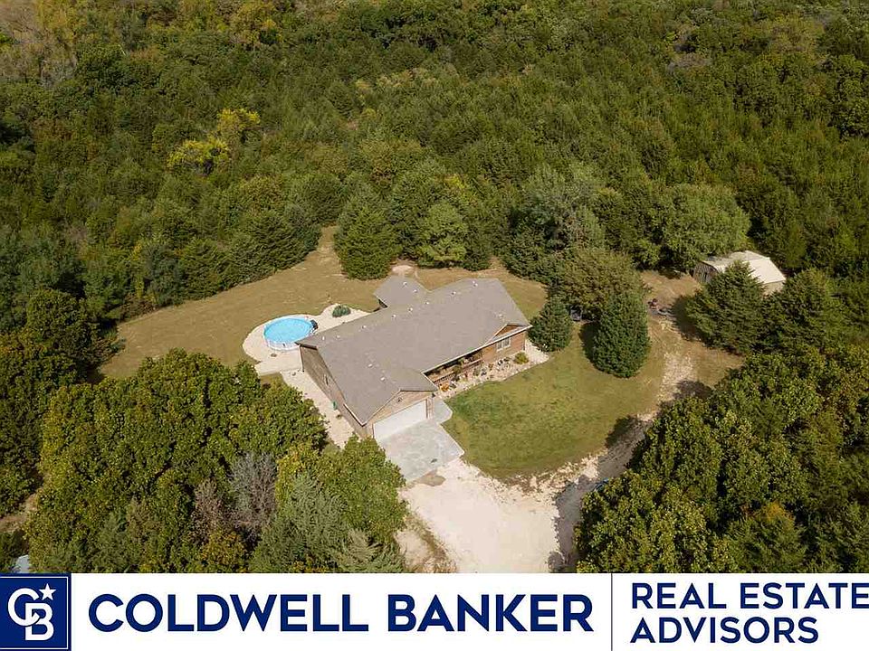 A rare find! Private, secluded large Ranch nestled into a wooded lot that is located in the popular Rock Creek school district. 3 Bdrm/2 Bath on the main floor with with a master bdrm that features an en suite master bath along with two lg closets. The kitchen has an island cooktop with a separate dining room. A bonus room on the main floor is lined with windows for a beautiful view of the wooded hillside and summer sunsets. The walk out basement just needs a coat of paint, flooring and a little trim to finish it out. It includes another bdrm and bath. Storage isn't a problem with a lg storage room located next to the laundry in the bsmnt. Outside the walkout bsmnt you'll find a patio that leads to an above ground pool. Totaling almost 23 acres this wooded Estate features a spring fed creek that is perfect for hunting with wildlife galore. A 24x24 outbuilding allows for plenty of storage of all your outdoor toys. Truly a unique property located just minutes from Manhattan!