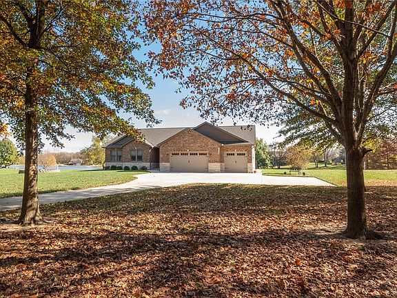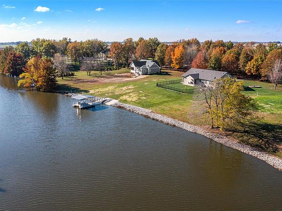 Rare opportunity with this stunning lake property built in 2019 on 2.47± acres, featuring breathtaking views and direct access to water activities from your own private dock. The energy-efficient 4-car garage boasts a smart passive design and a tandem parking area with direct access to the backyard. Enjoy outdoor relaxation or entertaining on the covered back porch. Featuring over 2468 +/- total sqft, the split bedroom floor plan ensures privacy for the primary suite, while the open concept design connects the kitchen, dining, and family rooms under soaring vaulted ceilings and amazing natural light and lake view. The 2 well sized guest bedrooms and the full hall bath are on the front of the home. Finished basement (partial): 9ft ceilings, family room for additional living space and LOTS of unfinished storage with egress. Located in the highly regarded Highland Schools district, this property perfectly blends serene lake living with modern comforts.