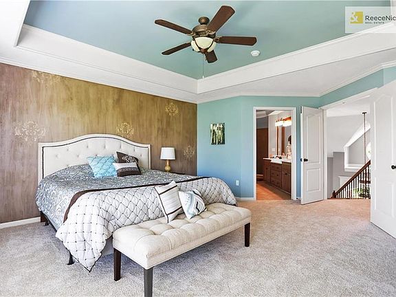 Stunning Two Story in coveted Wilshire Place. NEW interior paint, NEW carpet, NEW hardwoods, NEW lighting, NEW tile in two baths, custom cabinets, open kitchen into family room, formal dining room, non-conforming 5th bedroom or office on main level with french doors, and closet. Awesome location with Blue Valley Schools. Walk to park, schools, grocery. Finish the daylight basement to your taste. Gorgeous deck off the back, quiet street. Neighborhood pool and tennis court. You won't beat this price for the area.