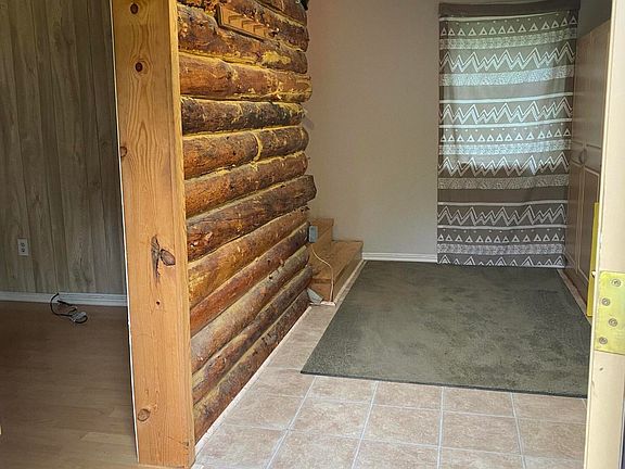 Two level Log cabin with full kitchen, upper-level bedroom and full bathroom. This home sits on a large, 2.28-acre lot and is located near Goose Bay and Fish Creek for lots of recreational activities in the area. Lower-level Kitchen features lots of cabinet space, electric range and refrigerator, adjacent living area and utility room. Upstairs is a large bedroom with full bath. Additionally.... there is a large shed/shop that is ideal for hobbies, woodworking or many other activities as well as another storage shed.