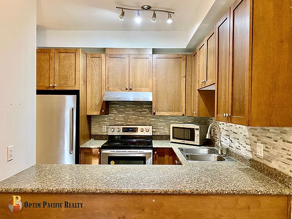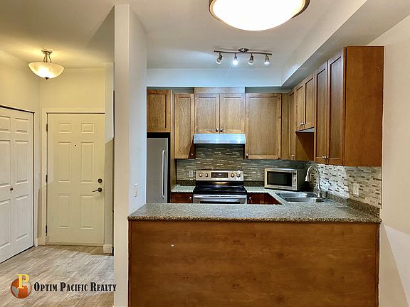 Welcome to this spacious 1 bed 1 bath ground floor unit at Pacifica! Unit boasts updated laminate flooring throughout, 9 ft high ceilings, SS appliances & includes 1 parking & 1 storage locker. Building is centrally & conveniently located in the heart of Surrey's city center. 13277 108 Ave, Surrey, BC V3T 0A9 Lease details: Lease term: 1 year Floor level: 1 Floor space: 594 + patio Bedrooms: 1 Bathrooms: 1 Parking: 1 Storage locker: 1 Furnished: no Smoking: not allowed Pets: up to 2 cats allowed w/ pet damage deposit Utilities included: Water Unit features: Quiet facing outdoor greenspace for privacy Functional open-concept floor plan w/ zero wasted space 9 ft ceilings Updated laminate flooring throughout for easy maintenance Kitchen w/ SS appliances Master bedroom w/ walk through closet & cheater ensuite In-suite washer & dryer Beautiful finishings throughout Location: In the heart of Surrey centre! Walking distance to Chuck Bailey Recreation Centre & Whalley Athletic Park Steps to Gateway SkyTrain Station & easy access to King George Blvd for commuting 7 minutes drive to Central City shopping mall, Walmart, T&T Supermarket, restaurants & more Near Simon Fraser University (SFU) - Surrey Campus, KPU & schools School catchment: Elementary K - 6 Theresa Clarke Elementary 7 - 7 Ecole K. B. Woodward Secondary 8 - 12 Ecole Kwantlen Park Tenant is responsible for strata move-in and move-out fees if any. Credit check and references required. Tenant insurance required. Professionally managed by Optim Pacific Realty. To book a viewing, please contact us with some information about yourself. Please include the following: When are you looking to move in? Reason you are moving? How many people will be occupying the unit? Brief description of intended occupants. Do you have any pets? Please specify. What is your full availability for a viewing? Disclaimer: While every effort has been made to provide current and accurate information presented on the listing, the information is not guaranteed and subject to change at any time. Tenant to verify if important. See description above