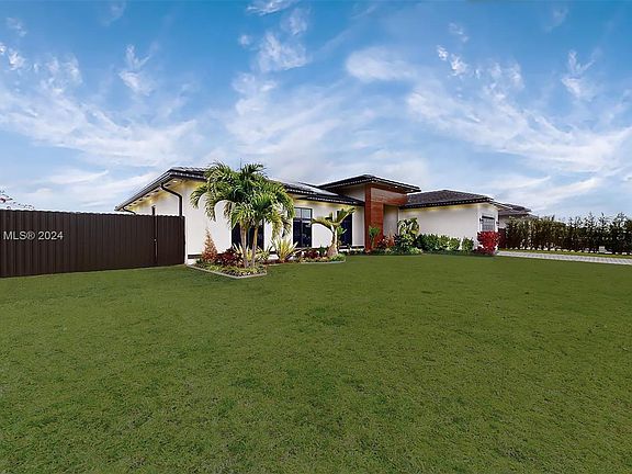Absolutely STUNNING, spacious, 5/4, 2 car garage, pool home, on approx 15,500+sq foot CORNER lot. NO HOA or CDD fees! Warm & inviting, this comfortable family home will embrace you as you enter the beautiful foyer into the living room, complete w/built-in library. Open kitchen has plenty of cupboards, quartz countertops & SS appliances. Airy family room has lots of windows, natural light. This home has it all...top of the line ES impact windows & doors throughout, solar panels power the entire house, 2 Tesla charging stations, remote-controlled electronic Zebra shades installed throughout, & porcelain tile. Custom-built closets in every bedroom. Master bedroom features tub & huge walk-in shower, 2 vanities, 2 walk-in closets. Covered patio leads to saltwater pool, big private yard.