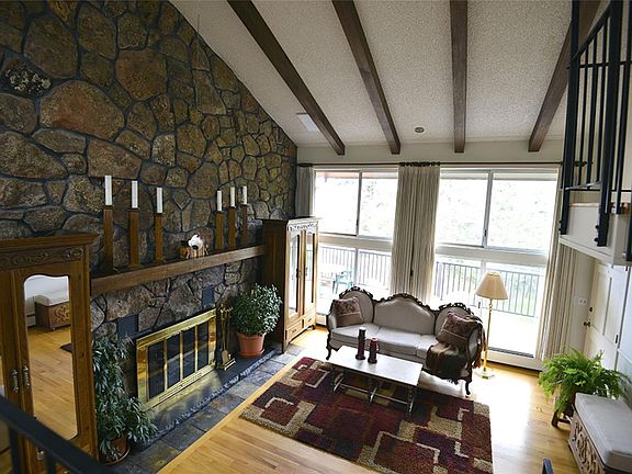 This lovely cared for home is nicely located on 2.3 acres of a mix of aspen and pine trees that create a park-like setting. New roof, new asphalt driveway. Large shed. Relax on the large trexdeck that wraps around 1/2 of the home. Sun room has space to create a wonderful dining/sitting area. Skylights make the kitchen bright, lots of cabinets, an Island and eating area. Stainless steel appliances and double ovens. Living room has a floor to ceiling mossrock fireplace, large windows, ceiling fans. Family room on lower level has a gas log fireplace. Lower level bedroom has french doors. Laundry room on lower level with utility sink, gas hot water heater. Mother-in-law apartment is located above the 4 car heated garage with cabinets and workbench area. This apartment has 1 bedroom, 5 piece bathroom, washer & dryer included. Open kitchen, living area with a large loft room.