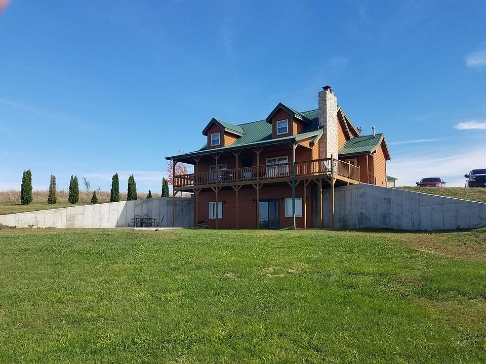 Beautiful country setting over looking a pond. Log cabin with full finished basement, built in 2001. Two wood burning fireplaces. Large insulated metal building 36 x 60.