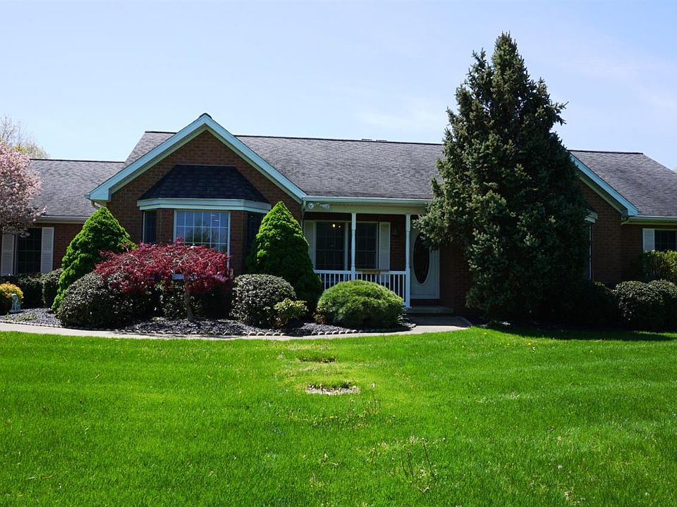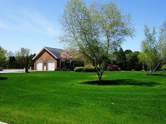 Private Paradise, Suburbia at its best! Custom built Belden brick ranch on beautiful 5 acre treed property. Over 150 trees, many variations. Great attention to detail in construction. 40' X 50' pole barn with 200 AMP service, 1/2 bath and overhead storage. In-ground pool 18' X 36' newer heater & pool liner. The winding 746' concrete driveway is impressive. 3 bedrooms 2 1/2 baths on first floor. Lovely 4 season sunroom is a great place to hang out. Eat in kitchen with new quartz counter top. Cathedral Ceiling in family room, fireplace is the focal point. Master has his & her closets, 4'X8' custom shower. 1st floor office. Heated attached garage 23' X 26', Epoxy floor (even a floor drain). Back hall/ mudroom has convenient bench. 1st floor laundry. Lower level has large room, kitchen, full bath, storage and 2 bedrooms, could be office or hobby room or multi-generational living area. AC, 3 years old, hot water tank 2021. * See list about this amazing property.