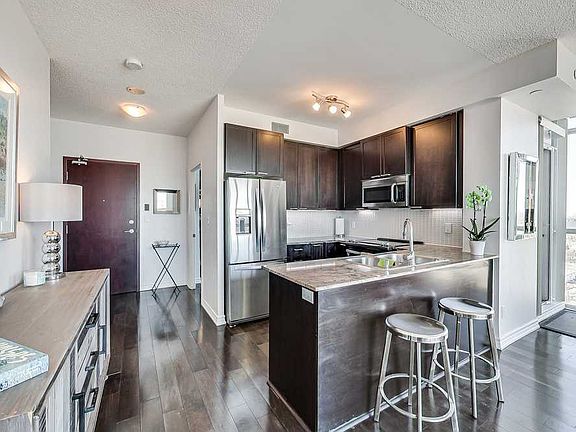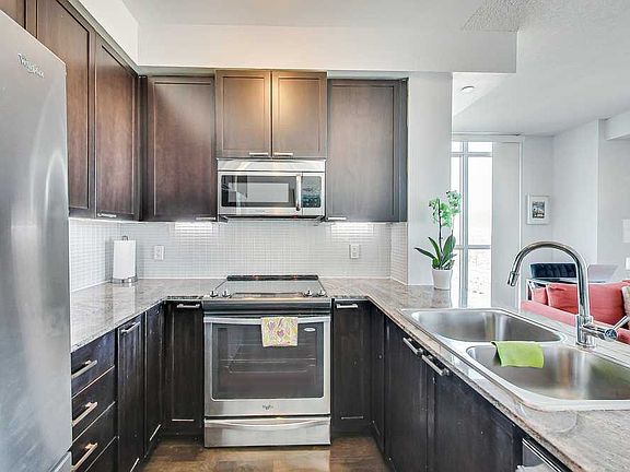 Spacious Northwest Facing Condo. Enjoy An Incredible View Of Sunsets Over The Downtown Skyline From Your Expansive 114 Sq. Ft. Balcony. This Bright Corner Unit Features A Modern Kitchen With Stainless Steel Appliances, And A Full-Size Ensuite Laundry Pair . Family-Friendly Building Includes A 24Hr Concierge, Gym, Shared Bbq Area, Indoor Pool, Hot Tub, Party Room, And Visitor Parking. Steps To Ttc, Nearby Schools, University, Shops, Amenities.