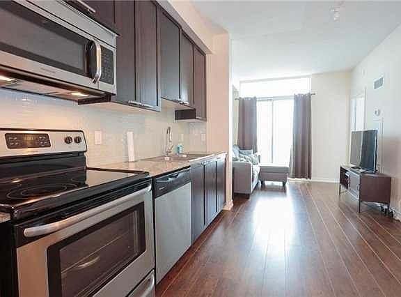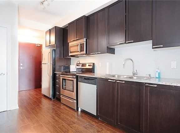 Beautiful Bright Unit With 9' Ceiling In A New Building With Private Balcony And Open West View For Sun Set. Floor To Ceiling Window In Master Bedroom, Spacious Den Can Be Used As Home Office Or Second Bedroom. Kitchen Features Stainless Steel Frigidaire Appliances, Granite Countertop, In-Suit Laundry, Walk Out To Balcony. 24 Hrs Concierge, Indoor Pool, Gym And Rooftop Terrace.