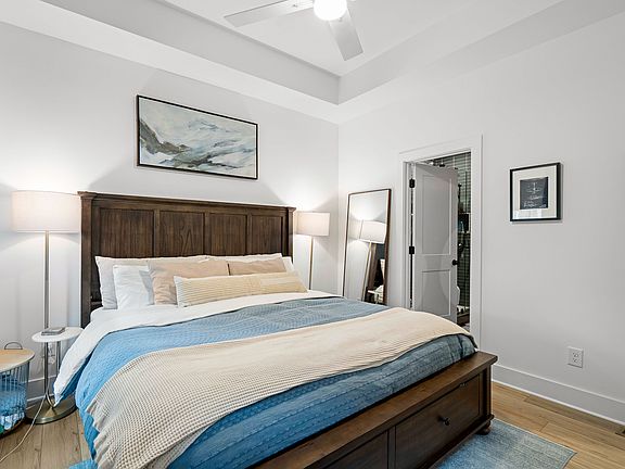 The primary suite offers a tranquil retreat with a spa-inspired ensuite bath, dual vanities, and a walk-in closet. The additional bedroom provides excellent options for roommates, guests, an office, or creative space.