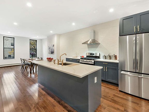 This nearly 19 ft wide two-family townhouse has been completely renovated and comes with parking! The house is currently set up as a 3 bed, 2 bath upper duplex with a 1.5 bedroom garden rental that has a very useable basement. (Some customization may be possible - if there is something you don't see here - please ask!). The owner's duplex has 10 foot ceilings and is flooded with sunlight. The kitchen is the highlight of this floor with custom cabinets and marble countertops and backsplash. Dark stained maple flooring throughout and a stylishly renovated, windowed black and white bath. Stairs can be added to the garden from this level should you so desire. The top floor has three spacious bedrooms and one large bath with double vanity. The king sized master has a reading or office nook and a walk in closet. Plenty of storage throughout as well as a washer dryer hook up. The garden unit can be used as a 2 bedroom, 1 bath and has access to the garden, a full basement, and a washer dryer hook up. Projected "covid" rent is approximately $3,300/month. With art galleries, coffee shops and new Michelin rated restaurants popping up nearby, this Bushwick location is only getting better! The J, Z, and L trains are just minutes away.