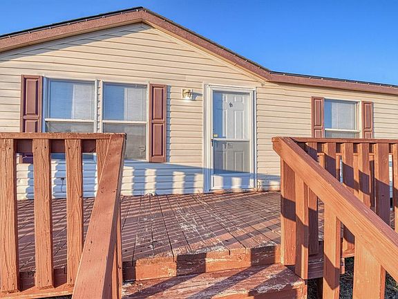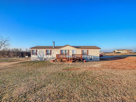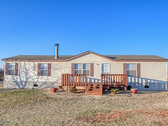 Check out this very well maintained home! Spacious rooms through out the home. Wood burning fire place to keep you warm on those chilly days. Large decks on the front and back of the house for entertaining. New floors, new front door, roof is less than 4years old, aerobic system, AC unit is less than 9years old, dishwasher & stove are about 2years old. New skirting was put on last year. Storage shed has concrete. Only been moved once, current location. Well and Septic. Storm shelter outside. Don't miss out on this one! Schedule your showing today!