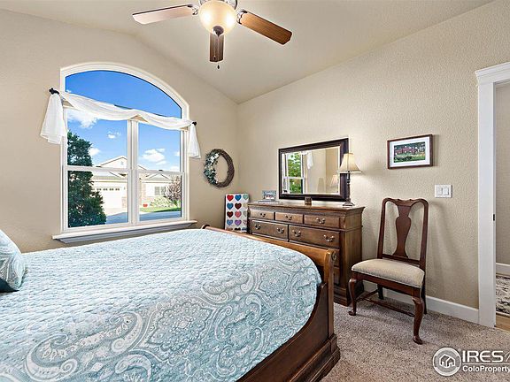 Step into an oasis of refined living with this exquisitely designed Schroetlin ranch, nestled within the exclusive Alford Meadow community. This custom designed home styled for ease of living, features 3 bedrooms, 3 bathrooms, with a finished 2-car garage that effortlessly merges elegance and comfort. From the first step into the doorway, you are ushered into a world of luxury. Enter the grand foyer flanked by the tastefully-designed bedroom and a full bath. The free-flowing layout ensures seamless movement from the entry to the living room, with its lofty 9-foot ceilings, opening to the kitchen, making it an ideal spot for lively gatherings. The gourmet kitchen will inspire your inner chef from the granite slab countertops, under-cabinet lighting, high-end stainless appliances, deep pantry, custom cabinetry, and a cozy dining area makes the space a true culinary haven. The primary bedroom is discreetly nestled off the living room, offering a serene space to escape after a long day and freshen up in the 5 piece bath. Descend into a vibrant rec room, where you'll find an additional bedroom and bath, abundant storage space all adding to the functionality of the home. Sit outside under the covered patio and you'll experience why this outdoor living space is coveted for its mountain views. The low-maintenance yard has mature landscaping, planter boxes for the green thumb, and a peaceful water feature. Other special highlights of this expertly maintained home include: a hard-coat stucco exterior and stone veneer, brand new HVAC system, induction oven, wood flooring, epoxy flooring in garage, main floor laundry room, sprinkler system, walk in closet, oversized windows, & motorized retractable awning on patio. The community includes a pool, walking path, & playground. A convenient location around the corner from everything. Just a quick drive to Fort Collins with easy access south and to I25. A perfect setting to call home. Come experience all this home has to offer.