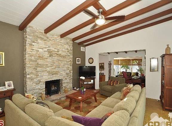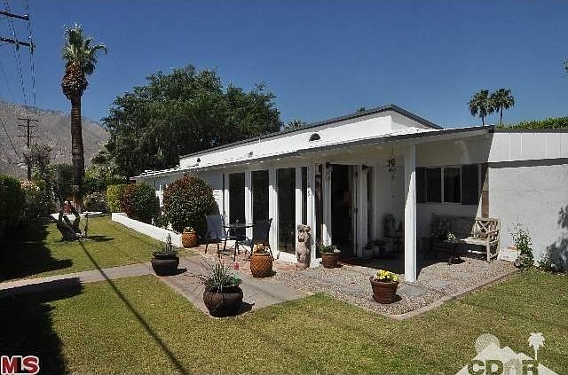 WOW! STANDARD sale** Ruth Hardy Park/Movie Colony East- RUMORED to be the getaway home for BETTE DAVIS, as per neighbors. This home will take you back in time, 3 bedrooms / 2 bathrooms, but the home shows with an UPDATED kitchen, LARGE dining room, STACKED stone fireplace in living room.NEWLY installed DOUBLE pane windows throughout...MASTER bedroom is at the front of the house which looks out at a beautifully landscaped COURT YARD with MOUNTAIN views ...newly UPDATED master BATH with LARGE walk in closet, guest bedroom w/ large WALK in CLOSET and newly UPDATED bathroom, the HUGE 3rd bedroom has it's own FIREPLACE...NEW tile in 8'wide hallway, TOO many AMENITIES to list, and it even has a 3rd PRIVATE patio that has an incinerator ..(anyone remember those trash burning days)? YES 3 patios FLOOR PLAN IS ATTACHED and measures over 2000sf