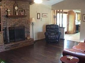 Beautiful Wood flooring in living room, vaulted living-room ceiling, & wood-burning fireplace. Ceramic tiled kitchen & baths. Extra storage through-out. Open kitchen w/ small eating bar, lots of counter & cabinet space. New Kitchen counters. Updated blk appliances, new shingles 2013, heat & air, hot water tank, 6 years old. Covered patio w/gas line, front & bk sprinkler system , mature landscaping, HUGE bk yard w/ wood fence, storage building, separate dog pen