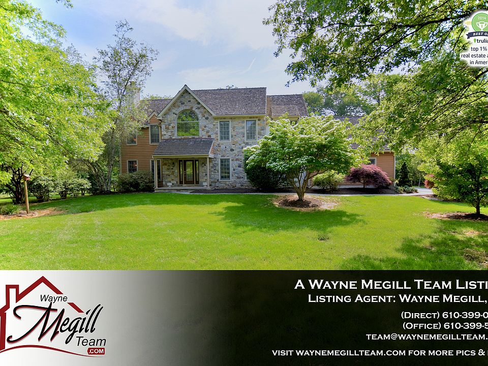VALUE Condition & Location best describe this Handsome 2Story 3875Sqft 4Bedrooms 2.2Baths Colonial on a Beautiful Level .80Acre Lot!! Country Gardens and a Fabulous Level Yard! NEW Cedar Shake Roof! Main Level: Entry Portico, Foyer, Living Rm: Wood-burning Fireplace, Dining Rm, Formal Powder Rm, Office/Den, Kitchen: High Hat Lighting, Granite, Tile, Carved Wood Soffit, Expanded Counter Area and Sunny 'Sky-Lit' Morning Room w/entry to the 2LEVEL Expansive Deck, Mud Room Space: Laundry Rm, 2nd Powder Rm, 2CAR Garage, Family Rm: GAS Stone Fireplace, Vaulted Ceiling & Skylights. Upper Level: Master Loft & Bedroom: NEW EnSuite Bath: Coool Tile & Radiant Floor Heat, 3Additional Bedrooms & Hall Bath. THEN, the 5thBedroom/Bonus Room: a Surprise that will make you smile! Side Walls are 'out-fitted w/Climbing Rocks UP 9ft'. LOL! Lower Level: Finished 1245Sqft: Multi-Media Room, Billiards & Ping-Pong Areas, Exercise Rm, Atrium Dr to the Backyard, plus 680Sqft of Storage. Come discover this Classic Chester County Stone Farmhouse on a Quiet Cul-de-Sac Street in the Fieldpoint Community, Unionville ChaddsFord Schools, Backing to 70+acres of Deed-Restricted Farm Land! 8minute drive to Downtown West Chester OR 20minutes by Bike!! The Vaulted & Cathedral Ceilings, Skylights & Windows Galore make this home Light and Bright! Enjoy Glorious Sunsets & Meteor Showers, sipping icy champagne from your FUN Hot Tub!! ***SEE the Virtual Tour for Floor Plans