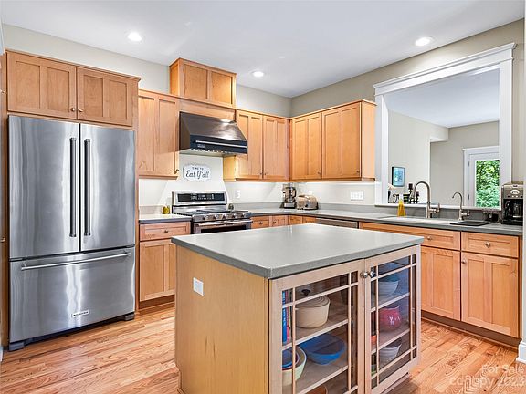 Discover this beautifully well-kept home in the highly sought-after neighborhood of Biltmore Park. Boasting three bedrooms and a bonus room, this residence offers versatile space to accommodate a range of lifestyle needs, from home office to second primary suite or even a fitness room. The main level welcomes you with warm, red oak floors, and the flowing floor plan and pass-throughs create an open, spacious living space. Step through French doors from the living room, and you'll find a private, fenced backyard that backs up to green space. The cottage garden provides countless bird sightings and other glimpses of nature. The kitchen is tastefully updated with a custom island, Corian countertops, and stainless steel appliances, including a Viking range hood. Other notable features include updated bathrooms, gas log, vented fireplace, plantation shutters, and an attached two-car garage.