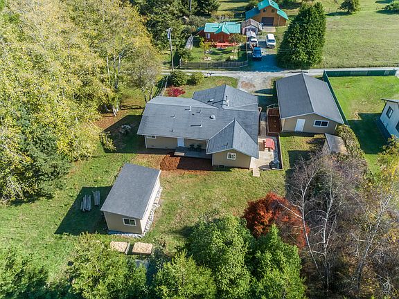Spacious turn key property in desirable Azalea Hill area, located just minutes from town! 3 bedroom, 2 bath approx 1700 sq ft home featuring remodeled kitchen with granite slab counters, soft closing solid maple cabinets with pull outs, & french doors leading to a south facing patio. Generous size living room with wood stove, massive master suite with claw foot tub & separate shower. Solid wood doors with shaker style casings, dual pane windows, solatubes, & forced air heat. Covered front porch with beautiful mountain views, detached double garage with 1 bedroom, 1 bath guest quarters, separate approx 288 sq ft shop space, garden shed and raised garden beds all on flat, open and usable, approx 4/10 acre lot with an excellent combination of mature landscaping and open spaces.