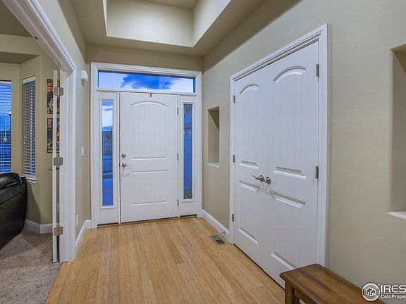 New Price on this nearly new luxury ranch home. South facing corner lot. Community open space. Grand foyer w/ample closet, display niches & cove ceilings welcomes family & friends. Open design w/vaulted ceiling. Kit w SS appliances, city-scape cabinets & over-sized island adjoins dining. Great Rm gas log FP centers the living space. Bamboo floors are easy care and naturally beautiful. MBR w/luxury tub, dual sinks & ample closet. HOA covers snow removal & trash. City park across the street.