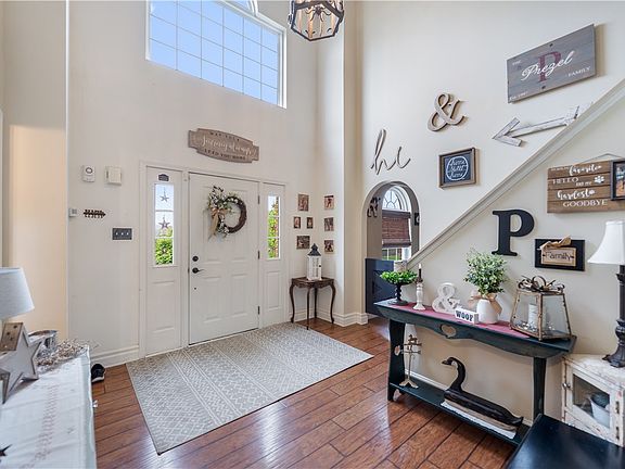 Enter this beautiful home hosting a 2-story front entrance to a large office, first floor laundry, and half bath. The spacious open-concept layout seamlessly combines the living, dining, and kitchen areas with laminate hardwood throughout. The gourmet, newly remodeled, farmhouse kitchen is features stainless steel appliances and a custom made island with a butcher block top. Step outside to a large covered deck, fenced in backyard and features a sparkling swimming pool and fire pit. This outdoor haven is perfect for hosting summer gatherings, or simply unwinding after a long day. The huge primary suite is a true sanctuary, boasting a luxurious newly remodeled en-suite bathroom featuring double sinks and 2 walk-in closets. The additional bedrooms are equally spacious and comfortable, each with its own unique charm and easy access to the hallway full bathroom. The finished game room hosts a custom bar, pool table and large heated garage. Roof is 2 yrs old.