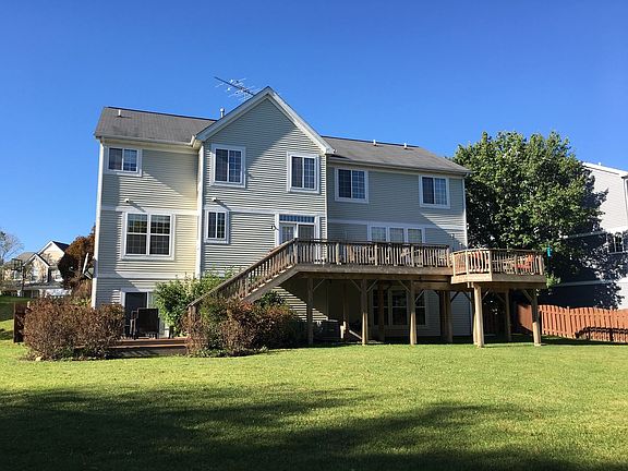 This is the biggest model on the biggest lot in Cambria. The updated kitchen with island has 42" cherry cabinets, granite counters and is open to family room. There is a custom butler's pantry and walk-in pantry. The bright and airy living room has soaring 18' ceiling. An office with French doors could be main floor bedroom. Front and rear stairs lead up to the bedrooms. Double doors open into the huge master suite with 2 walk-in closets and remodeled bathroom. The walkout basement has a wonderful recroom, bedroom, full bath and media room with wet bar. Doors open out to the big private backyard with sprinkler system. Off the kitchen is a huge low maintenance deck. Back inside the first floor laundry has a wonderful cubby system to keep the kids things organized. The home has low maintenance brick and aluminum exterior. Zoned furnace and a/c are only a few years old. 3 car garage has custom flooring. And yes, this home is in the Cary school system and short stroll to Hoffman Park.