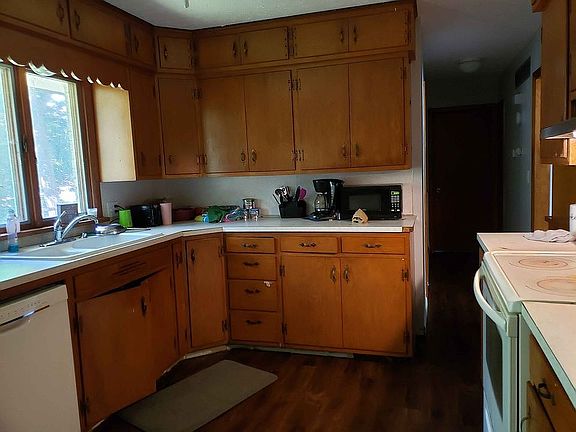 This single-family home has 2-bedroom 1 full bath, 1144 square feet brick veneer built in 1963 sits on .4 acre lot. Basement is finished with two rooms that can be used for crafting, office, or storage; and a large open family space; basement also has storage shelving in a large closet. Two car garage with MyQ garage opener. Home comes with washer, dryer, dishwasher, refrigerator, oven/range. The house sits on the county side of the street but has city benefits. Schools are Deerfield, West, and Free State High schools.