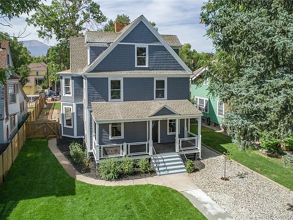 Welcome to this remodeled turn of the century Victorian in the historic Old North End. This home blends historic features with modern updates. Pikes Peak Views! The large front porch features a brand new beautiful wood ceiling. Open concept living room that flows right into a gourmet kitchen boasting a 10' long granite island, gas range top w/pot filler, wine fridge, and butler's pantry. Sunroom on main floor with windows that open up to your brand new wrap around porch and counter space inside and out for entertaining. The formal dining room features pocket doors with original hardware and fireplace with new marble surround. Main floor has original hardwoods that have been refinished. The refinished staircase takes you up to your second floor which has an office, sunroom, laundry, full bath and three bedrooms. The master includes a walk-in closet with built-ins and fireplace with original antique tile. Enjoy your 5-piece master bath with heated floors, huge tub, shower w/digital controls, 2 shower heads, rain shower head and body jets. The 3rd floor provides you with four bedrooms and a 3/4 bath. The basement can be accessed from the kitchen and includes a large bonus room, 3/4 bath, wine cellar and two rooms that can be used for storage and living space. The basement has a separate entrance from the back for potential use as an Air BnB or VRBO. Two high efficiency furnaces, quite register booster fans with thermostat control on 2nd and 3rd floors, 2 new AC units, Rinnai tankless hot water heater and 70 gallon water heater. New 3 car garage, plumbing and electric throughout, insulation, porcelain tile flooring in all baths, LED lighting throughout with half of them on dimmers, new paint inside and out, new yard and sprinkler system and Nest thermostats on the 1st floor and 2nd floor.