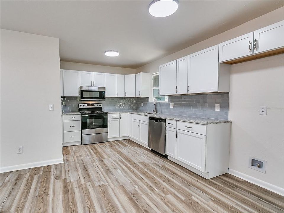 Completely remodeled 4 bed 2.5 bath house in a growing area of Northwest OKC. Within a couple miles of Chisolm Creek, this home boasts modern upgrades, including a stunning open concept design, beautiful vinyl wood floors, recessed lighting, new kitchen cabinets, stainless steel appliances, and granite countertops in the kitchen and bathrooms. Spacious bedrooms offer plenty of closet space, while the primary suite features an en-suite bathroom with a walk-in shower. A large backyard provides the perfect space for outdoor gatherings. Don't miss the opportunity to make this house your dream home! **New roof going on in the next 2-3 weeks!**