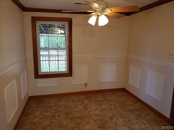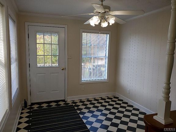 Country setting with easy commute to VA/Elizabeth City. Freshly painted interior, beautiful kitchen with gas cook top burners and refrigerator, dining room, huge utility room/sunroom, sitting area or bonus room, great bedroom area, covered back deck, side deck with ramp, and 5 outbuildings. Sold "as is"