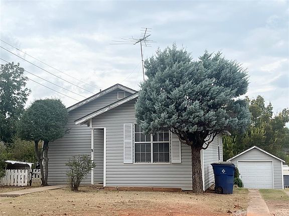 Check out this cute little home on a great corner lot! The vinyl siding will offer low maintenance and years of life and the detached garage will offer your car shelter from the Oklahoma storms.