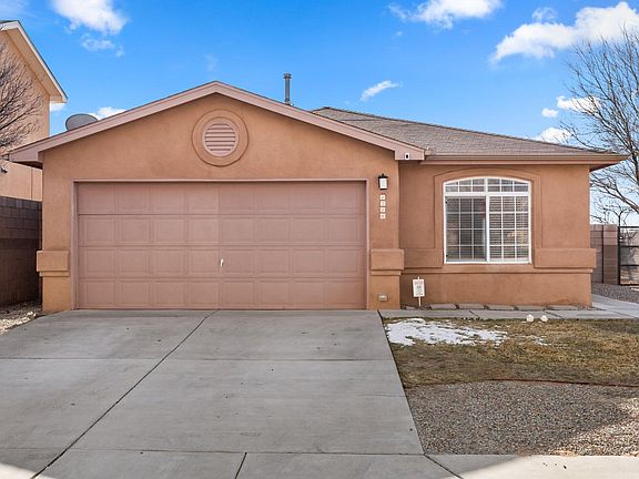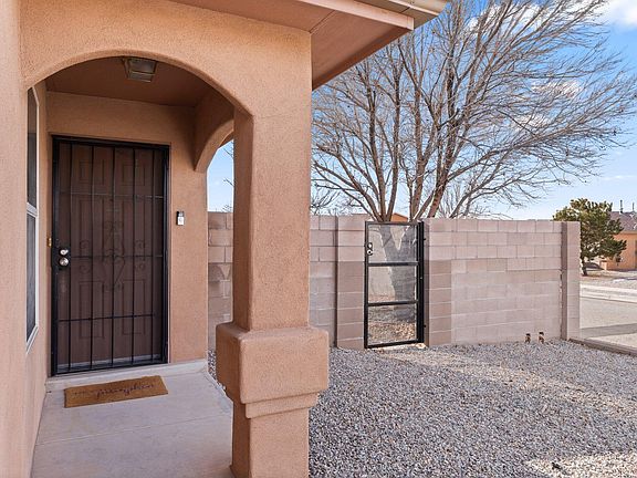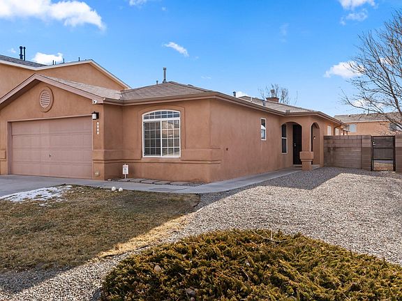 Discover your dream home in Rio Rancho! This corner-lot gem features a walled backyard for privacy, a 2-car garage, and a vacant layout ready for your personal touch. Inside enjoy the comfort of carpet and laminate flooring, vaulted ceilings, and a cozy gas log fireplace. The kitchen boasts stainless steel appliances, and the master suite offers a double sink vanity, garden tub, separate shower, and a spacious walk-in closet. Unwind on the covered back patio, creating the perfect spot to relax and enjoy the outdoor space. With a laundry room for convenience, this Rio Rancho home is a perfect blend of comfort and style! Schedule a showing and let the beauty of this home captivate you.