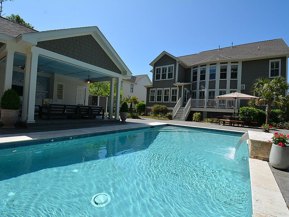 Welcome home to Paradise!! Stunning custom home in an amazing location to Charleston and the beaches. The kitchen is a cook's dream. Brand new cabinets, backsplash, quartz countertops, drawer microwave, double ovens, fridge and a gorgeous Farm house sink. It's a wonderful open floor plan with a formal dining room, office, downstairs guest suite, private sitting area off the master, 2nd floor media room and a truly amazing back yard Oasis. Heated/cooled/lighted custom pool features a waterfall, jets for lap swimming and a retractable cover. A large Cabana features a shaded sitting area with outdoor TV for watching sports or your favorite movies. It also has a sink, ice-maker, fridge and bathroom. The fenced in yard is fully landscaped and includes an outdoor shower area, custom lighting and a built-mosquito system, all backing up to the neighborhood lake. The neighborhood has it's own private kayak and boat dock (tidal) and trail for exclusive use for residents. In the last year the entire interior of the home has gotten a fresh coat of paint. The carpet in the media/exercise room on the second floor is new. Not to mention the complete kitchen redo, including a huge wine fridge. This home is meticulous and move in ready. The house has a NEST system and also a tank less hot water heater. With 5 bedrooms and 4.5 baths the house is a perfect home for the family to enjoy and plenty of room for guests. This is a must see to appreciate. The attention to detail is stunning. 10 minutes to the beach and 15 minutes to Charleston and a quick trip to the airport. Can't be beat!!