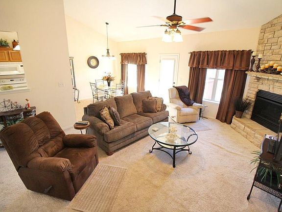 Simple, elegant, affordable one-level living in coveted and private Stonebridge Village! This beautiful home is move-in ready with newer paint and carpet. 3 bedrooms, 2 full baths, and 1610sqft plus a 300sqft finished hobby room on the lower level. The easy-to-maintain home features vaulted ceilings, gas fireplace (currently has electric log), upgraded light fixtures, and a spacious master suite. All appliances including refrigerator, washer and dryer!! Enjoy the golf course, gated entry, and all the great amenities at Stonebridge - there's a community pool just across the street! This is the most affordable home in the neighborhood! Stonebridge is only minutes from everything Branson (dining, shopping, entertainment and medical) as well as SDC and Table Rock Lake.
