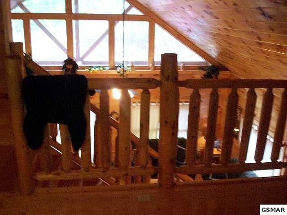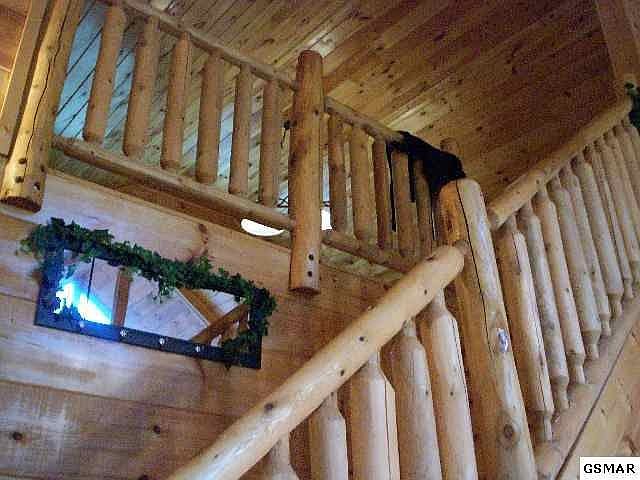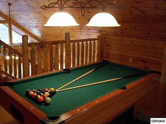 Really sweet "Grumpy Bear"= All wood interior, 1 huge bedroom with log furnishings and whirlpool tub, loft with pooltable and 2 sleeping nooksfor kids, screened in deck with hot tub, open livin room/dining area, stack stone gas log fireplace, cathedral ceiling