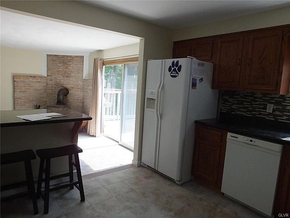 Nothing to do but move in. Spacious 4 BR Colonial on corner lot. Freshly painted (neutral); new carpet, newly remodeled Kitchen w/tile flooring and back splash and granite counter tops. bathrooms recently remodeled. Built in bookcases in Family Room, with wood stove. Below rear deck is a block carport, very easy to add door and make 3rd garage. Best Value in the area. Just 3 blocks to schools and playground and nature trail as well as short distance to D & L Trail, Appalachian Trail, Lehigh River for kayaking, or Blue Mountain for skiing.