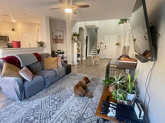 Welcome home to this newly renovated single-family home in a quiet neighborhood, perfect for families and pet owners alike. This property is on a dead-end street so there is very little traffic. This home is bright, open, and modern and has quiet and friendly neighbors on all sides. Key Features: Premium Appliances: Cook and entertain with ease in the fully-equipped kitchen boasting luxury name-brand stainless steel appliances (Kitchen Aid dishwasher and microwave, Bosch fridge, and GE cafe range) that elevate your culinary experience. The Bosch fridge is less than one year old. The kitchen also has a newer, high-torque garbage disposal. Luxury Vinyl Plank Floors: New, durable, and waterproof luxury vinyl plank flooring throughout the home. Upstairs bathrooms have new ceramic tile. Large Two-car Garage: Spacious two-car garage with additional storage area on the left as you enter that has a water softener and newer water heater. The electric garage door opener comes with two remote controls. A storage loft and bike hoist have been installed in the rear portion of the garage to provide easy access to belongings. Ring Doorbell and Driveway Camera: Enjoy enhanced security and awareness with modern Ring devices that you can activate with your own account. Landlord will have no access to these devices while you occupy the rental. Remodeled Bathrooms: Freshly renovated bathrooms featuring modern fixtures and stylish design elements. Ceiling fans with lights in each bedroom and living room for optimal comfort. Dog Friendly: Bring your furry companion along to enjoy the spacious living areas, dog door, and fenced backyard. Additional $250 pet deposit and $50 pet rent applies. No cats are allowed at this property. Fenced, Landscaped Backyard: Complete with synthetic turf and paver patio is perfect for outdoor activities and gatherings. Fresh stonework and raised garden area. TONS of Storage Space: Spacious walk-in closet in the primary and guest bedrooms, providing ample storage space for your wardrobe and other possessions. Large linen closets in the primary bathroom, laundry room, and upstairs hallway. Downstairs has two coat closets as well. Fantastic Location: Located on a peaceful street perfect for families seeking a safe and welcoming environment or people looking for peace and quiet. Many convenient businesses and stores within walking distance such as Winco, Albertsons, Lee's Liquor, dentists, hair salons, Eos Fitness, car repair shops, and tons of restaurants. There is a new, modern elementary school and park with a huge splash pad, basketball courts, a grassy area, and a walking trail about a 10-minute walk away. Access to the 215 is about a one-minute drive. The LAS airport is a 13-minute drive with regular traffic. Additional Amenities: -Washer and dryer included for added convenience. -Spacious open concept layout ideal for modern living and entertaining. -Vaulted entryway with a balcony that creates a grand and inviting atmosphere. -Upgraded light fixtures throughout the house for enhanced ambiance and style. -Recently painted throughout, inside and out. -Many large closets and pantry for storage. -Property mailbox is a short walk down the street. -Sliding glass windows and heavy-duty blinds throughout for optimal privacy and airflow. Don't miss out on the opportunity to make this stunning house your new home! Contact us today to schedule a viewing and experience the luxury and comfort this property has to offer. Applicants will be required to complete an online application and background/credit screening from Landlord Studio and pay a $40 application fee. The renter must put all utilities in their name except for trash. No smoking inside the property. Dog friendly with an additional $250 refundable damage deposit and $50 pet rent. Dog owners must be respectful of neighbors and prevent excessive barking or howling. No cats or other animals are allowed on this property without the landlord's approval. One-year lease, which may be extended. The tenant is responsible for maintaining the front and back yard (turf must be cleaned regularly if dogs are present) and adjusting the irrigation system to keep a seasonal watering schedule. A security deposit is required to hold the property and the first month's rent is due before move-in.