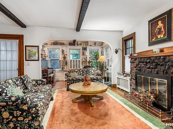 Charming half brick Tudor Colonial in choice location! Featuring a large living room with Chestnut trim on the windows ,huge brick fireplace ,beamed ceiling,library alcove and possibility of a small office, large formal dining room, dramatic family room,w/Franklin woodburning stove ,vaulted ceiling and sliding glass door to a small deck . There is a full bath with a stall shower adjacent to the family room. There are arched doorways throughout. The kitchen has a cozy breakfast nook, stainless steel appliances and a Spanish tile backsplash. There is a screened -in porch off the living room. The second floor has three large bedrooms and a hall bath. There is a very large room on the third floor that is a potential bedroom with access through a second floor hall staircase. The basement is large with several rooms. There is a two car garage ,a large backyard all a short distance to NYC bus transportaion,schools,stores,parks and houses of worship. The house has gas,hot water heat, newer roof(2020),new chimney liner,new driveway and exterior was painted in 2023.