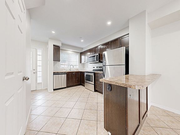 This newly renovated fabulous 3-bedroom townhouse is ideally located within easy reach of shopping, Schools, Transit, parks, and major highways. Elegantly Decorated In Neutral Tones & Beautifully Maintained & Upgraded. It features a Large Living Room, a Lovely Kitchen. 3 bedrooms and 3 washrooms. The upper floor has 2 washrooms with the primary having an ensuite and walk-in closet. A powder washroom on the main floor. Quality Hardwood Flooring. Fridge, Stove, Dishwasher, Washer & Dryer. Basement Is Not Included And Tenanted Separately. Main Floor Tenants Will Pay 60% Of Utilities. Available Now The renter is responsible for utilities. Last month's rent is due at signing. No smoking allowed. No pets allowed.