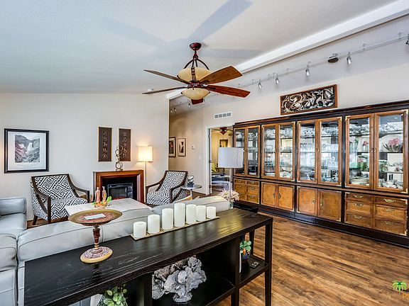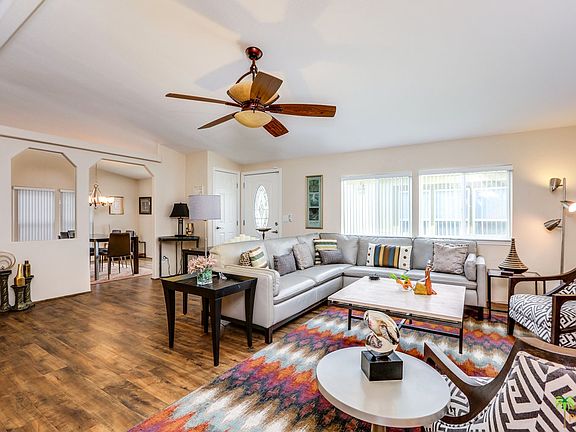 This one has it all, great location, wonderful peaceful tiled side patio, two car garage, and over 1600 square feet, with no one behind you. The owner has made quite a few improvements to the property including new quartz kitchen and bathroom counter tops, new sinks, new Pergo floors and freshly painted. It also offers two spacious bedrooms, a den, a full dining room and wonderful views. Space rent is $764 per month. Desert Sands, a gated mobile park offers tennis, pool, spa, sauna, exercise room and an active clubhouse. With onsite management what more could you ask for?