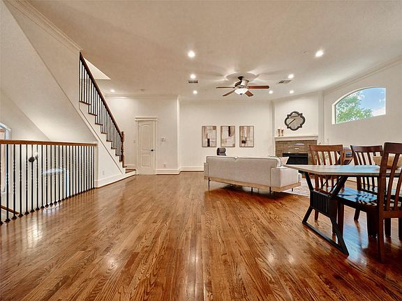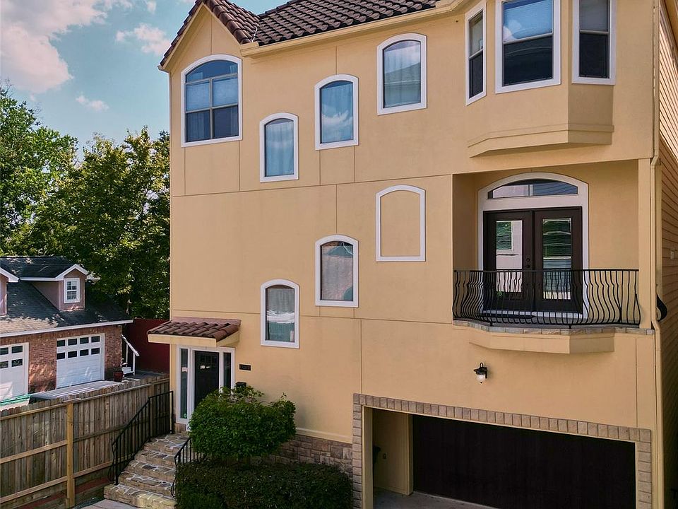 Modern Mediterranean 3 story home in 77008. No HOA and has parking for 5 cars! This 3 bedroom and 3.5 bath residence features updated paint throughout, hardwood flooring and light filled rooms.You are greeted by an elegant entry and the lower level bedroom -perfect for guests or a home office. On the second floor- the main living area boasts expansive living & dining areas, high ceilings, fireplace, modern kitchen with granite counters, stainless appliances and a breakfast bar. On the top floor are the generous primary bedroom suite with vaulted ceilings and spacious primary bath, another secondary bedroom and a small bonus room for a nursery or office space.The convenient upstairs laundry room makes washing a breeze. All room sizes are approximate - so measure if important. The 2 car garage is large with high ceilings for storage and fits a full size truck. W 23rd is walkable with sidewalks and curbs. Prime Shady Acres location near hike/bike trails, shopping, and dining!