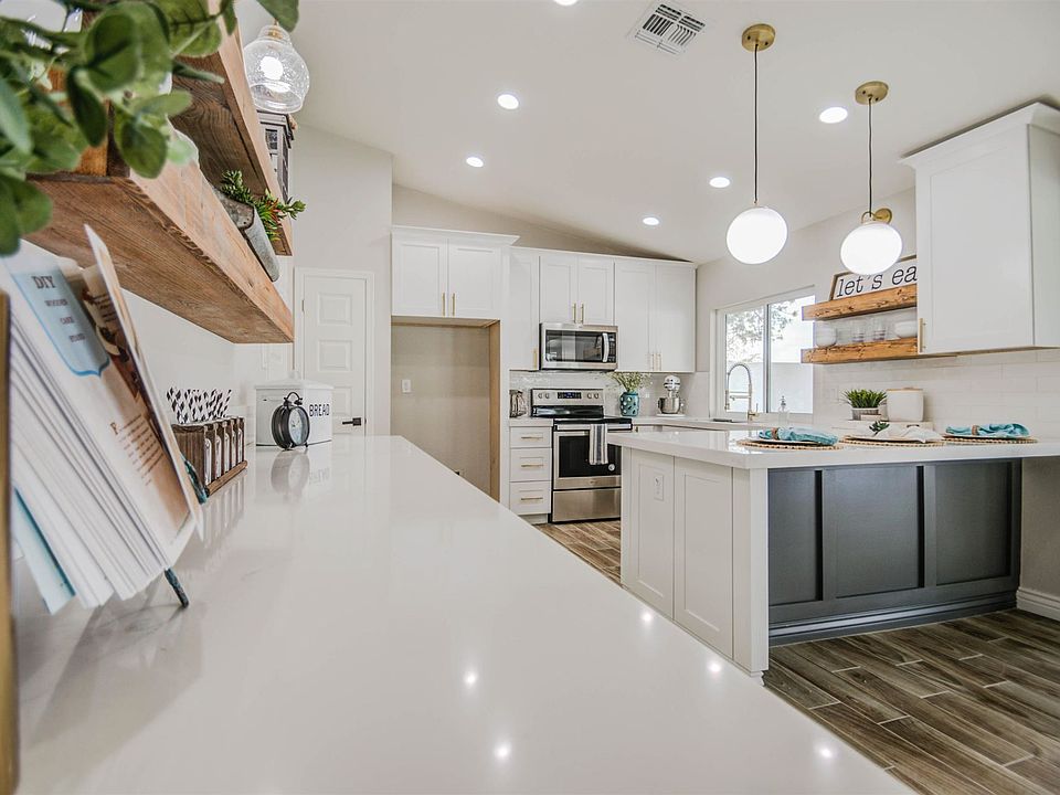 Enjoy this stunning remodel w/ plenty of natural light in a desirable Chandler central location-NO HOA! You're sure to love the open floor plan w/ brand new upgraded wood tile, carpet, windows, rockport doors & paint. The kitchen features stainless steel appliances, brand new cabinetry w/ Carrera quartz counters, open floating shelving & modern gooseneck & pendant lighting, not to mention can lights throughout! The bathrooms have tile surrounds w/ accent niches, Carrera quartz countertops, new faucets & modern shower trim kits. New roof, water heater & AC. Relax in your pool in the privacy of the backyard-maintenance-free w/ artificial grass. Great RV parking. This home has great access to freeways(101, 60, 202), schools, shopping & entertainment. Make this move-in ready home yours today!