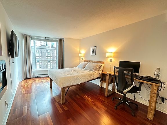 Experience upscale urban living in Vancouver's sought-after Coal Harbour at 1328 W Pender St. This private room in a stylish 2-bedroom apartment features a cozy fireplace and access to premium amenities, ideal for professionals looking for comfort, convenience, and a quiet home near the waterfront.