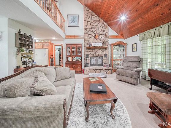 Beautiful 3-Bed, 2-Bathroom Home on 21.9 Acres m/l—Just Minutes from Rolla! This scenic property offers the perfect blend of comfort and country charm with a pond, above-ground pool, 2-stall barn, lean-to, and both attached and detached garages (2-car each). Step onto the inviting covered front porch and into a spacious living room featuring a stunning stone fireplace and pine ceilings that continue into the loft. The open-concept main level boasts a dining room with deck access—ideal for entertaining—and a kitchen with custom cabinetry and generous countertop space. Two bedrooms, a full bath, and a laundry room complete the main floor. Upstairs, the loft sitting area leads to a private primary suite with a massive walk-in closet and a full en suite bath with a separate tub and shower. The partially finished basement offers a large family room and room to grow. This is a must-see!  Schedule your private showing today!