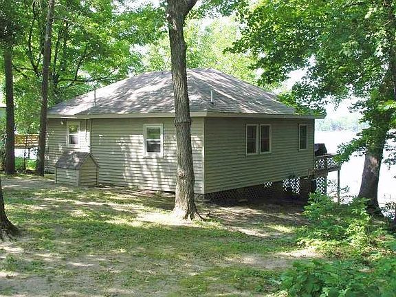 Have you heard about those good old days when people went to the "cabin?" Well...This is that "cabin" you should think about going to the lake these days! Set back off the dead-end road on this beautifully treed lake lot you will find this very clean 3 bedroom seasonal cabin featuring large lakeside deck with gorgeous view of the lake! Great lake shore with a highly sought after boathouse that not everyone can have! Additional storage shed, too! Enjoy lakeside and backyard fire pits. A very quiet setting to relax, fish and boat!