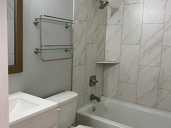 Renovations are complete. Interior has been painted, new base boards and carpet throughout. Brand new kitchen! New cabinets, countertops, backsplash and appliances. Recessed lights, new fireplace and remote controlled ceiling fan/light in main living area. Bathrooms have been remodeled. Awesome 300 sq ft deck, 400 sq ft concrete slab big backyard and storage shed make for an ideal outdoor space! This neighborhood has several parks, baseball fields and access to the walking trails that take you to West Lake are a few steps from the front door. Renter is responsible for all utilities. Pets are welcome but requires a non refundable one time fee of $1000.