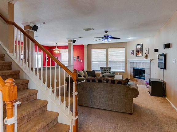 Large David Weekly home with 5 bedrooms and massive 3 car garage on an oversized cul-de-sac lot. Great floorplan with spacious kitchen, blinds installed throughout, formal living and dining areas can be used for multi purposes, comfortable family room with wood-burning fireplace, Large upstairs gameroom. Extra large backyard with sprinkler system and extended covered patio. Great neighborhood with community pool, award winning Keller ISD schools and easy access to shopping and freeways