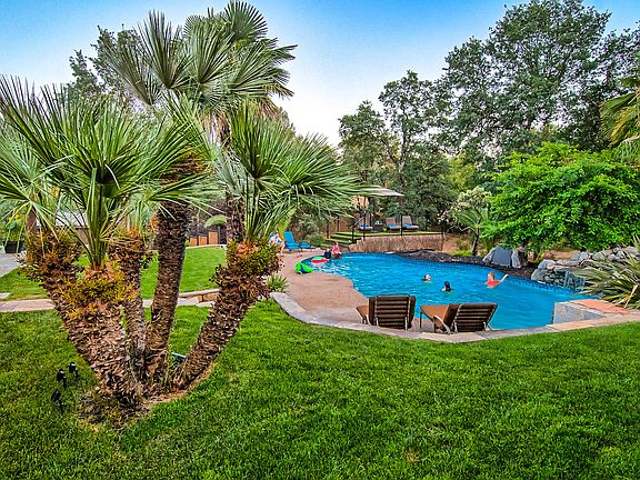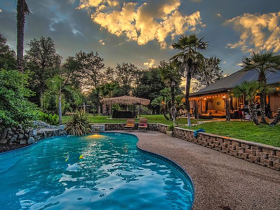 It's like going on vacation every time you come home. Has custom granite, natural stone, feels like a Resort with large palm trees, Waterfalls, pool outdoor covered dining, and Jacuzzi. Lots of recent updates. One of a kind property.