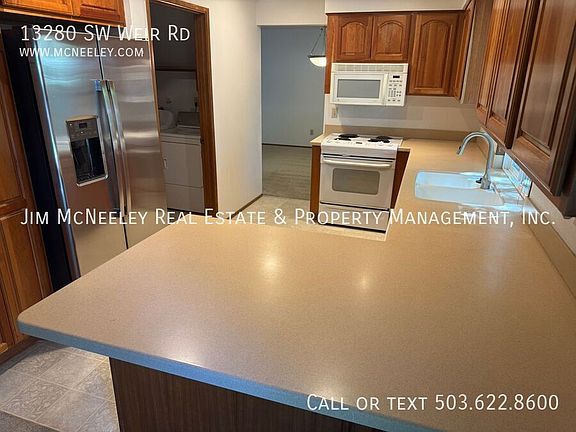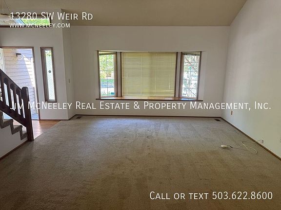 They may not appear on third-party sites) - Pay screening fee: $65.- If you have a pet, assistance animal, or to certify that you do not have animals: https jimmcneeleyrealestatepm. See pet policy on property listing) County: Washington Lease Terms: 1 year Date Available for Viewing (subject to change): Now Heat: Gas No Utilities included in rent: Year Built: 1985 Levels: Two levels Layout - Main level -Living room, kitchen, 1/2 bath, dining room, utility room. Upstairs 3 bedrooms and 2 baths Appliances Refrigerator, stove, dishwasher, garbage disposal, washer/dryer Amenities: Loft bedroom, Vaulted ceilings, central air conditioning, Skylights in upstairs bathrooms. Vinyl windows, extra storage room off master, Back deck, storage shed, walking distance to three parks -near Southridge High School. Garage: Double with opener Fenced Backyard Vehicle Restrictions: RV or boat parking with management permission Schools: Hiteon, Conestoga, Southridge PET POLICY: No pets Directions: Murray Blvd, E on Weir or 130th, S on Weir INFORMATION NOT GUARANTEED AND SHOULD BE VERIFIED. SQUARE FOOTAGE IS APPROXIMATE & MAY INCLUDE BOTH FINISHED & UNFINISHED AREAS. SCHOOL AVAILABILITY SUBJECT TO CHANGE.