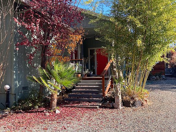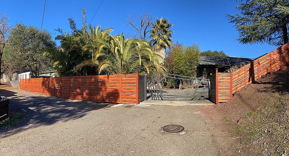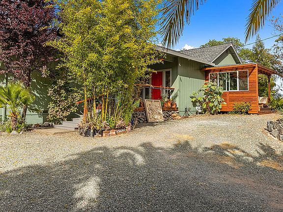 3 beds 3 baths 2,740 sqft $855,000 Beautifully maintained property with two residences on a quiet and private .88 acre lot, with spectacular views of the Sanel Valley, oak forests on two sides, and at the end of the street for maximum privacy. 2 blocks from Post Office, Thatcher Hotel and restaurants. Easy access to Hwy 101 and only 40 minutes from Santa Rosa; 12 miles from Ukiah for Natural Food Coop, Safeway, Costco; Ukiah Valley Medical Center, VA Clinic; Less than 90 minutes from both the Sonoma and Mendocino Coasts. Property has the feel of a small secluded estate with a custom gated entrance. These two homes, surrounded by magnificent tropical fully-irrigated landscaping, display elite appointments with chestnut and pecan hardwood flooring, custom kitchen concrete countertop, bull-nosed corners, art lighting throughout, built-in appliances, and 9-to-10 ft. ceilings, central air, and two redwood decks. New roofs and paint on both buildings in 2019; New stairs and deck on second residence. New fence (2020) at entrance to property. Detached 2200 sqft “shop” with concrete floor, 11ft. ceiling, fully insulated, and 75,000 BTU A/C, and another outbuilding as well. Property is terraced and ready for greenhouses, vineyard, olive orchard or other sustainable farming or gardening projects. Appraisals available. For Sale by Owner -- Please call 707-484-3444